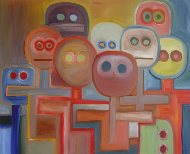he couple, man and woman in an abstract way. The man is on the left. Used a lot of paint on the palette knife.